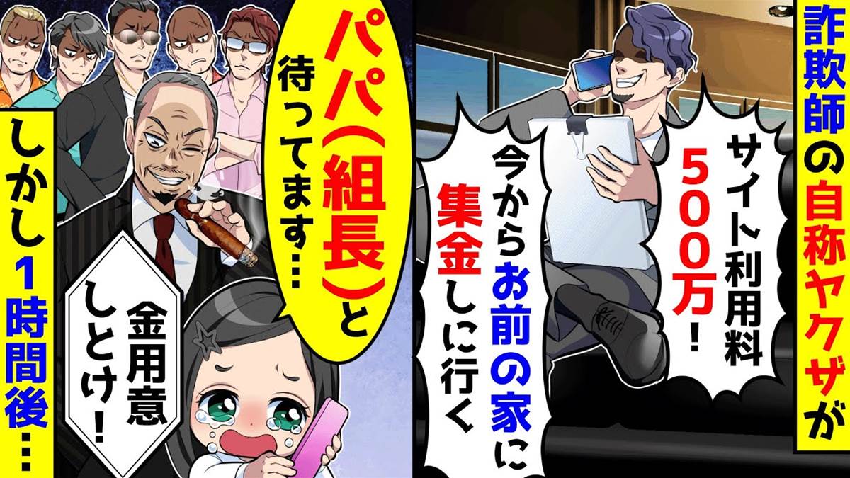 詐欺師の自称ヤクザがサイト利用料500万をお前の家に集金しに行くと電話してきた。組長のパパと待ってますと伝え1時間後