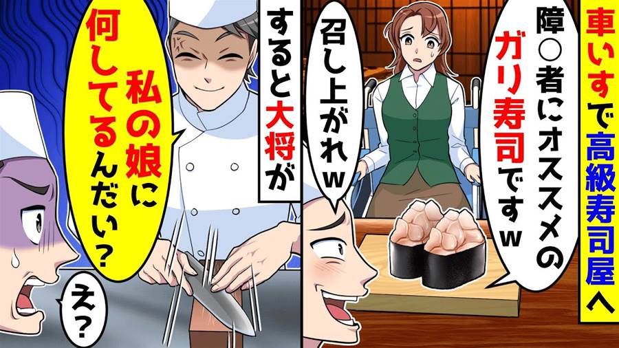 車いすで高級寿司屋へ行くとガリ寿司を出された、すると大将が