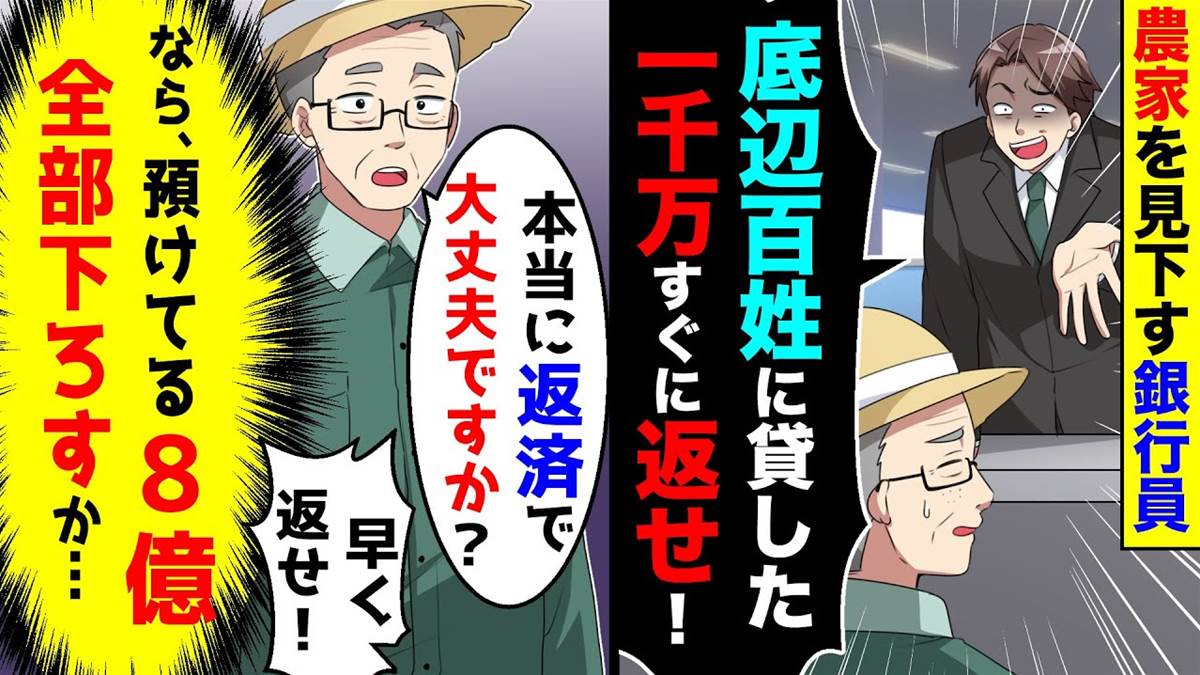 農家を見下す銀行員「底辺百姓は融資した1千万すぐに返せ!」→返済のために預けてる8億下ろしたら