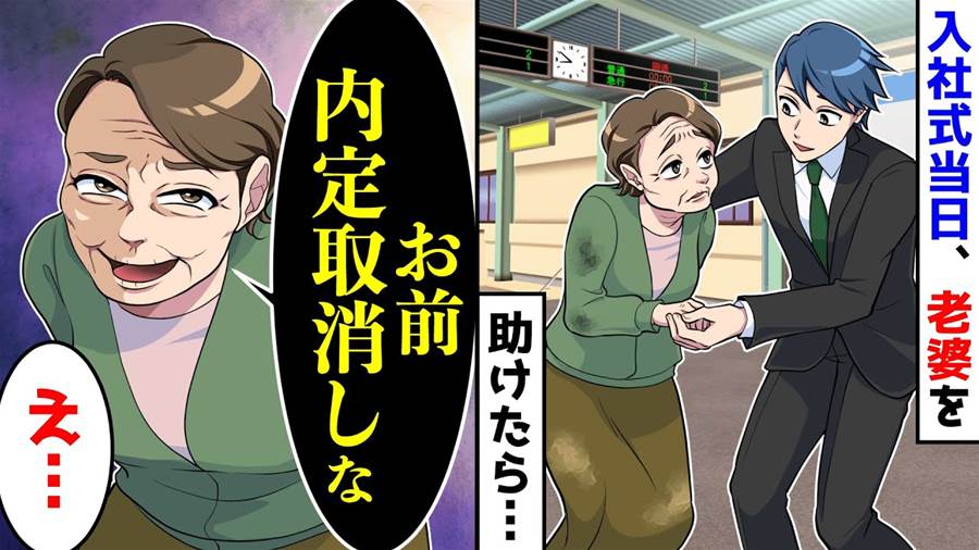 入社式当日、駅で倒れてる老婆を助けたら衝撃の発言をされた