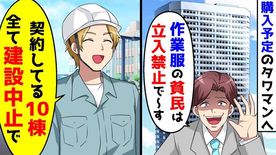 作業服で購入予定の高級タワマンへ行くと営業マンに追い返された。