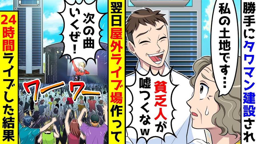 私の土地に勝手にタワマンを建設され頭にきたので、翌日屋外ライブ会場を作り毎日24時間ライブを開催した結果w