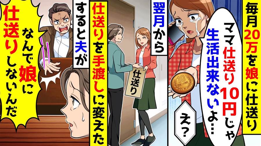 大学生の娘に毎月20万を仕送りしているが、娘から電話で「仕送り10円じゃ生活出来ない」と連絡が。翌月から仕送りを手渡しに変えると