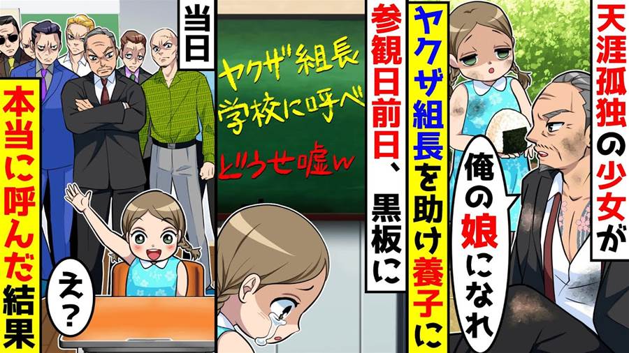 天涯孤独の少女がボロボロのヤクザ組長を助け養子になった。参観日前日にヤクザ組長を呼べと黒板に書かれたので本当に呼んだ結果